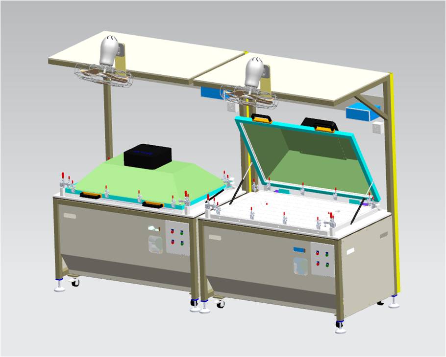 3. An oven cover is added above the press frame to increase the activation rate. The right picture shows the state of the press frame opening